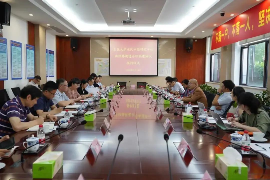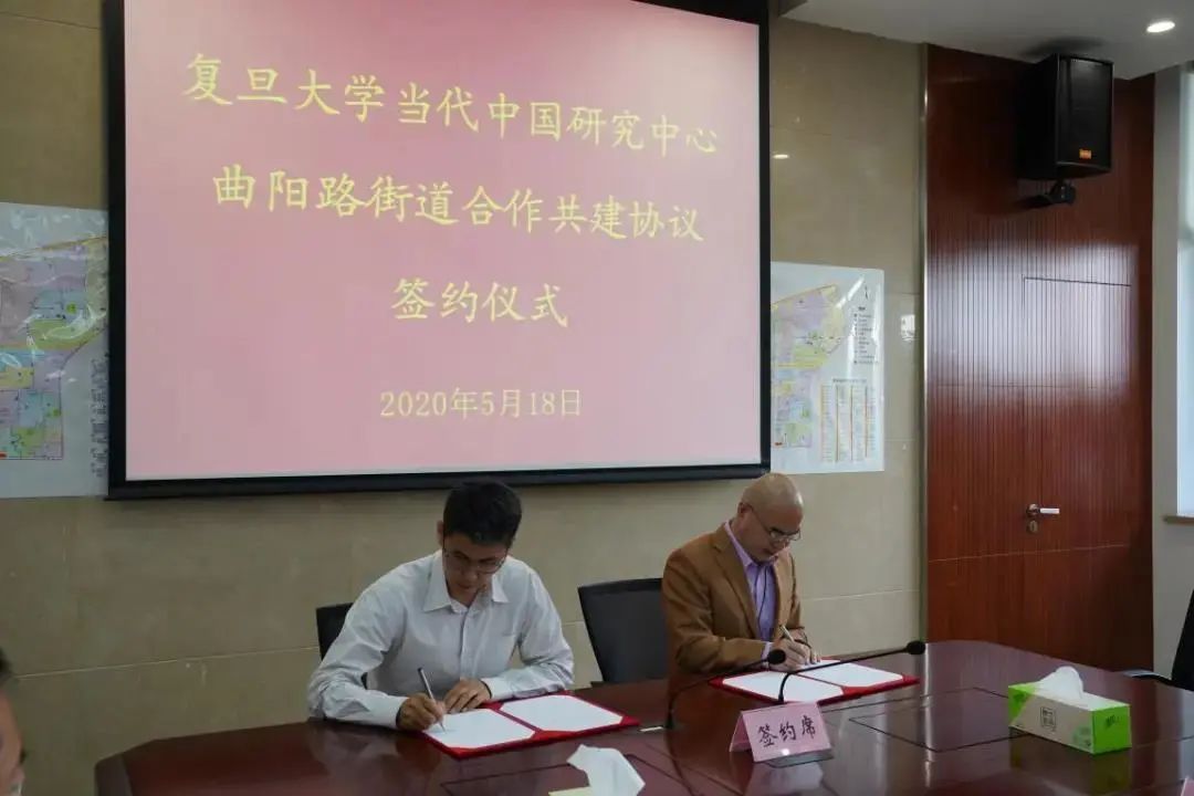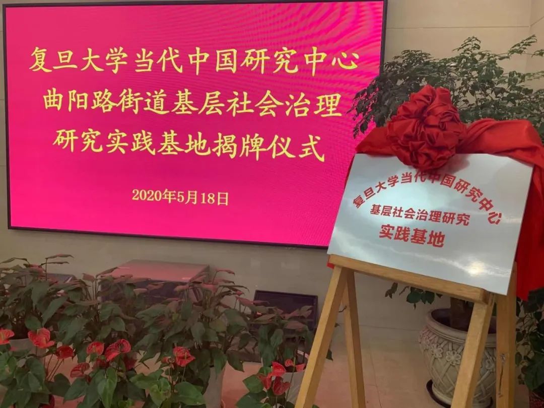 5月18日下午,复旦大学当代中国研究中心与虹口区曲阳路街道合作共建协议签约暨复旦大学当代中国研究中心基层社会治理研究实践基地揭牌仪式在曲阳路街道办事处举行。复旦大学党委副书记尹冬梅、虹口区委组织部部长杨春花出席仪式并为基地揭牌。复旦大学当代中国研究中心主任刘建军教授领衔的专家团队,区民政局局长耿彧,以及曲阳路街道党政班子领导谢海龙、王磊、何东滔、王佳纬、周永家、金安国等参加会议。